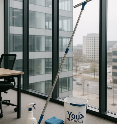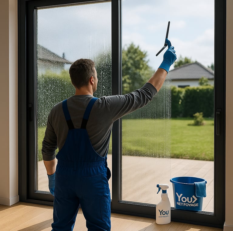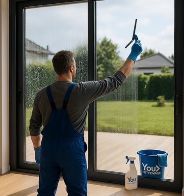 You Nettoyage assure un nettoyage de vitres impeccable, pour des surfaces éclatantes et une luminosité retrouvée, aussi bien à l’intérieur qu’à l’extérieur..